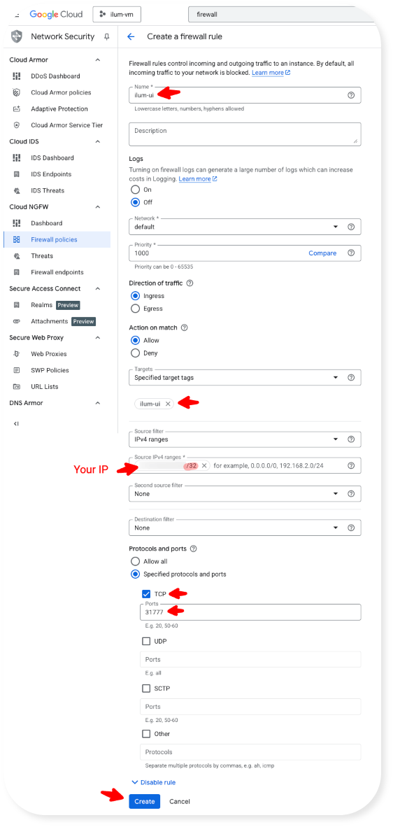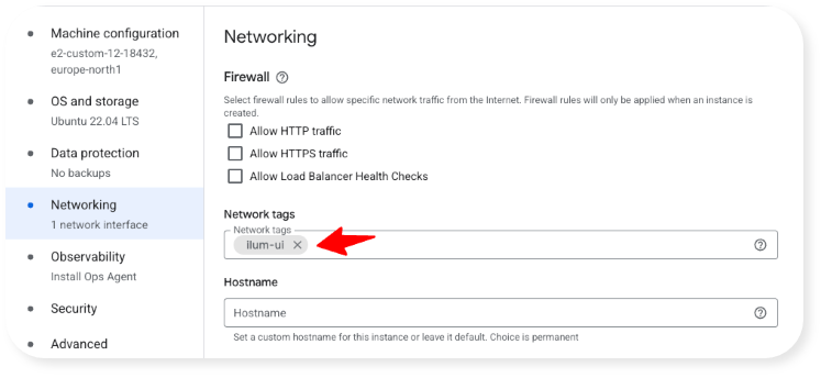 - Im "Networking" tab, add the "ilum-ui" tag: