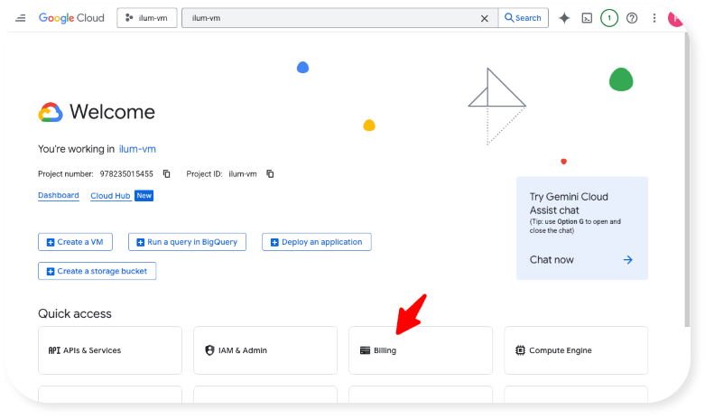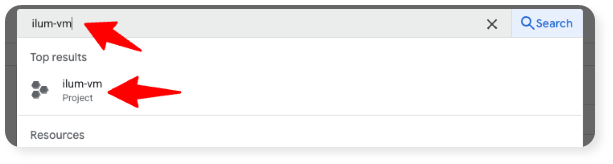 - Next, we need to assign our "ilum-vm" project to this billing account. Search for the project in the search bar and click it: