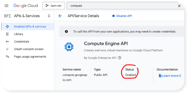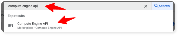 - Search for "compute engine" (not "compute engine api" as before) in the search bar and click on it: