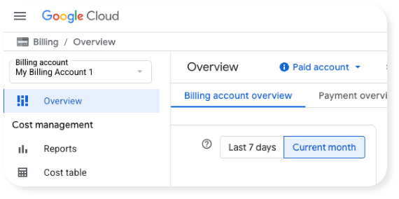 - Now, follow all instructions and add a payment method until you see the newly created billing account Overview: