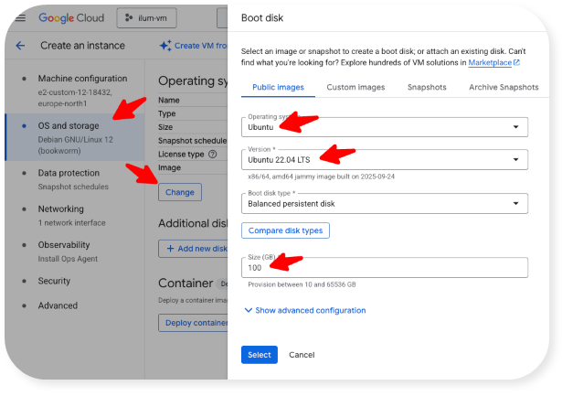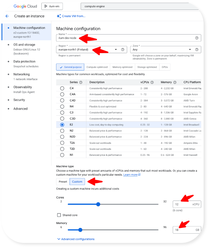 - Under "Observability", disable "Install Ops agent for Monitoring and Logging" (this will save cost).