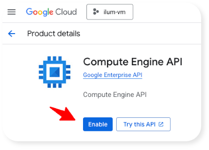 If you cannot install the Google Cloud CLI on your machine as described above, then the setup of a virtual machine to run Ilum is slightly more involved. Follow the instructions below. This assumes that you have followed the tutorial above until and including "Step 4: Enable the Compute API".